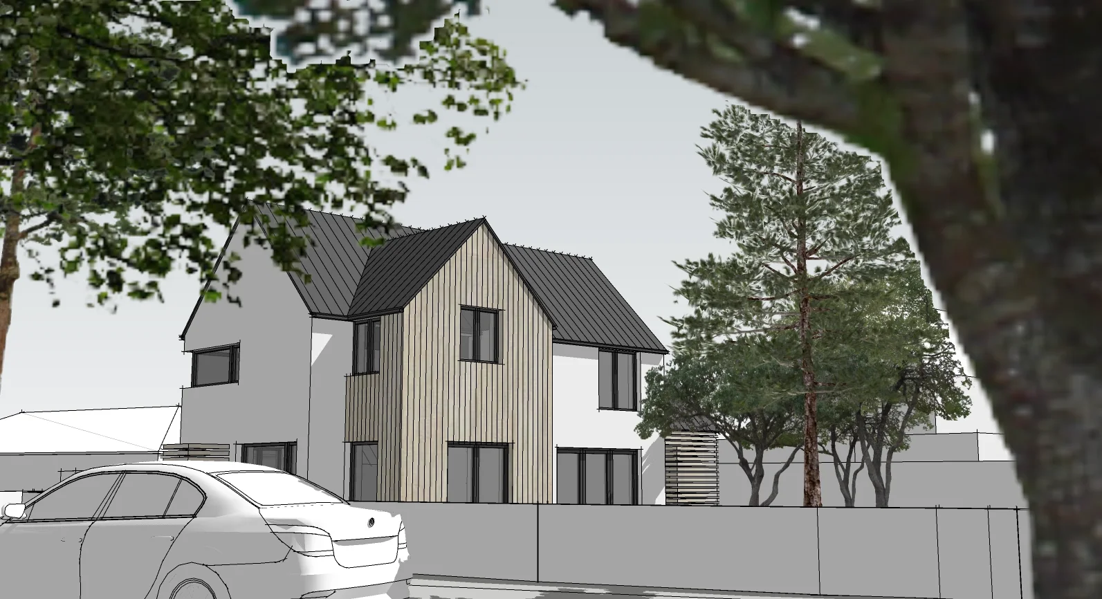 We proposed a dwelling inspired by traditional architecture in the countryside, with some modernist touches, aiming to open the living area to the garden and picture windows to capture surrounding scenery. The selection of natural materials like lime render and timber, coupled with the high-performance fabric-first approach with low carbon technologies, represents our understanding of truly sustainable solutions.